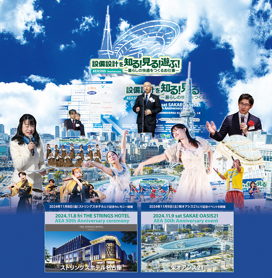 2024年11月9日(土)栄オアシス21にて記念イベントを開催いたしまた。 たくさんのご参加およびご来場ありがとうございました。 特設ページへ → AEA 50th Anniversary event