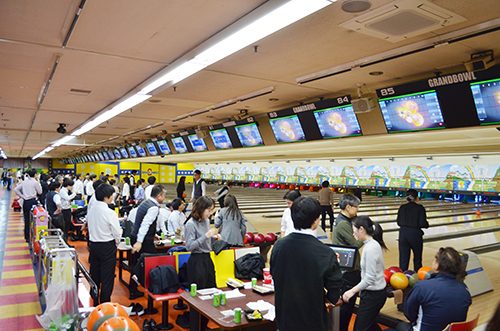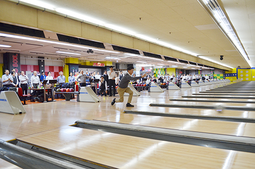 今大会は、まずは当協会の賛助委員会の加藤副委員長から競技説明があり、井手委員長の見事なストライク始球式により幕を開けた。ここ名古屋グランドボウルではスタート前に3分間の練習投球の時間が設けられ、みな感覚をつかみながらそれぞれのレーンでゲームが始められた。今年も大人数参加いただき、レーン順位でも争うチーム戦もあることから、ゲームは大いに盛り上がった。今年の個人戦上位のスコアは例年と比べると、ややロースコアな内容となった。しかしこれは今までがハイスコアすぎた感もあったので、協会の大会の感覚が麻痺してきているのかもしれない。表彰式終了後は協賛いただいた各社からの景品提供により、参加者の皆さんへ参加賞(景品)を出すことができ、新しい会場での大会にふさわしい内容となった。最後は近藤副会長の閉会のあいさつで締め括られた。